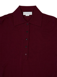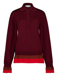layered polo-neck top Highlights - Burgundy - Long sleeves - Polo neck - Button fastening - Layered hem - Layered cuffs Made in Italy Composition Virgin Wool 100% Washing instructions Read Manufacturer Guidelines