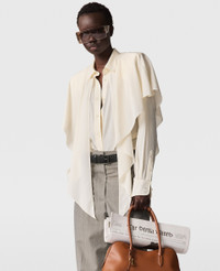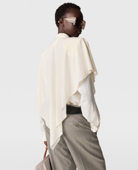 Item 620154SY2069500 This collared shirt is spun from soft organic silk crepe de chine. Featherlight, flowing and feminine, its silhouette is given a masculine edge with strong shoulders – layered with cascading paneling. Pair it with iconic Stella McCartney denim. - Color: Buttercream - Oversized - Shoulder pads - Layered waterfall paneling - Semi-sheer - Pointed collar - Buttoned cuffs - Long sleeves - Button fastening - Made in Italy Product Care & Fit Advice - Care: Dry clean only - Composition: 100% Silk - Fit: Regular fit - Sizing: Take your usual size - Model is 179cm or 5' 10.5"