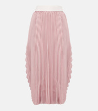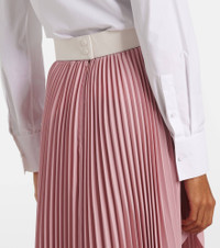 Leather-trimmed plissé maxi skirt