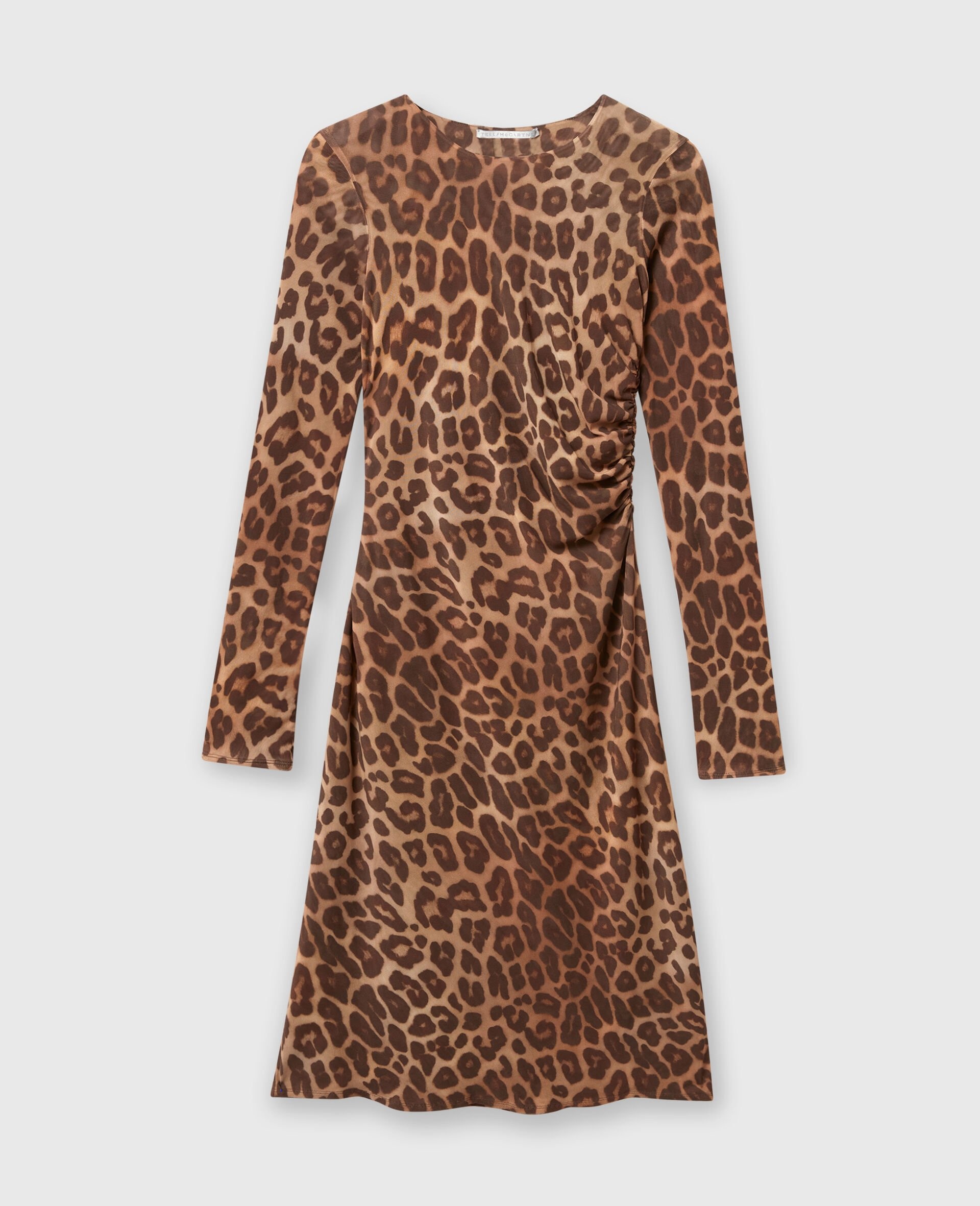 Item 6J03573SPZ642203 Celebrating the beauty of animals without harming them is iconic to Stella McCartney. Part of our Spring 2025 collection, this slinky midi dress is handcrafted from stretchy mesh swathed in a striking leopard print – tailored with long sleeves and a crew neck. - Color: Leopard print - Crew neck - Long sleeve - Calf-length hem - Stretch-mesh texture - Zipper fastening - Made in Portugal Product Care & Fit Advice Care: Dry clean only Composition: 100% Polyamide Fit: Regular fit Sizing: Take your usual size
