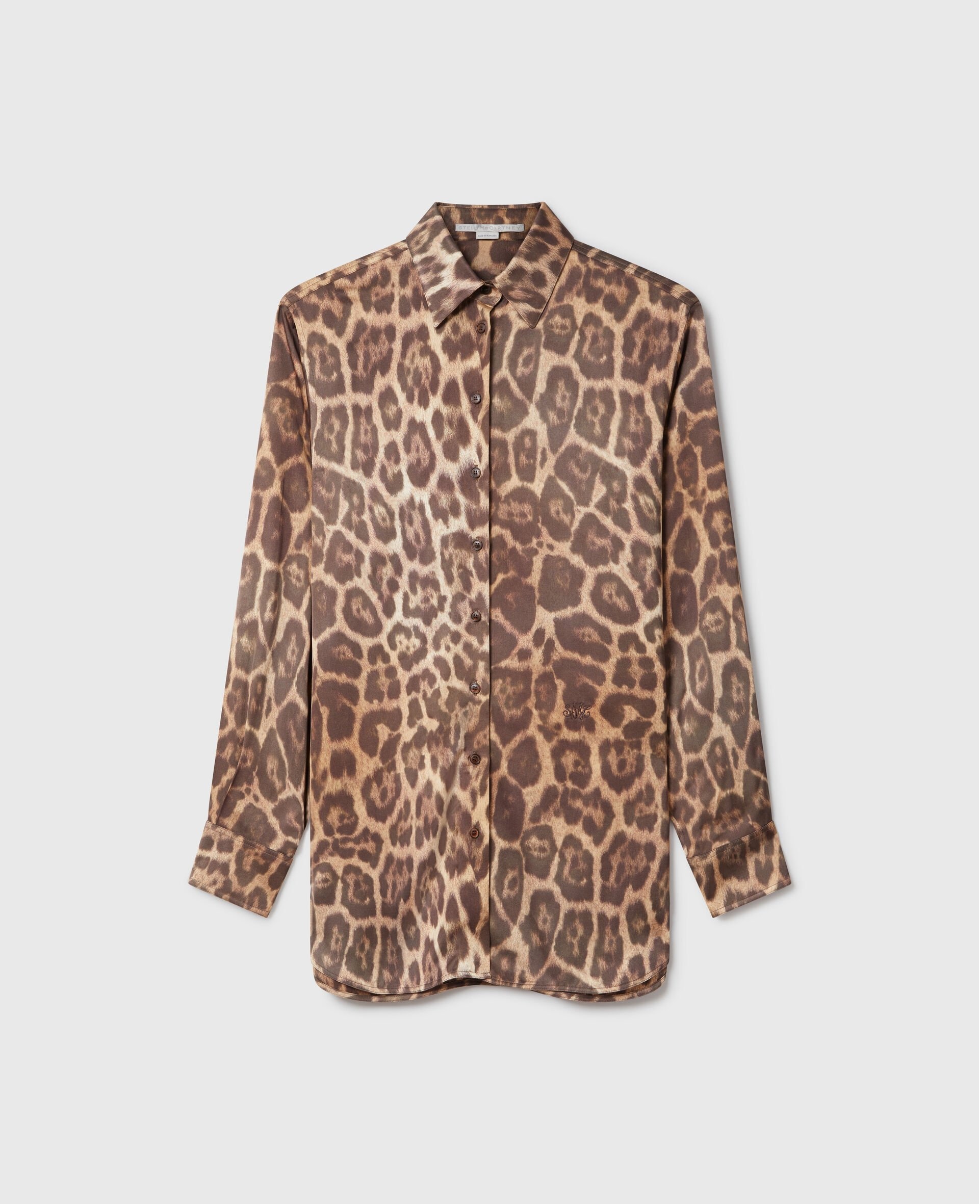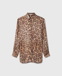 Item 6201313FS3032203 Celebrating the beauty of animals without harming them is iconic to Stella McCartney. Part of our Spring 2025 collection, this oversized shirt is handcrafted from lustrous, forest-friendly viscose swathed in a striking leopard print, tailored with a pointed collar and finished on a curved hem. - Color: Leopard print - Pointed collar - Long sleeve - Buttoned cuffs - Button fastening - Curved, thigh-length hem - Made in Romania Product Care & Fit Advice Care: Dry clean only Composition: 100% viscose Fit: Oversized fit Sizing: Take your usual size