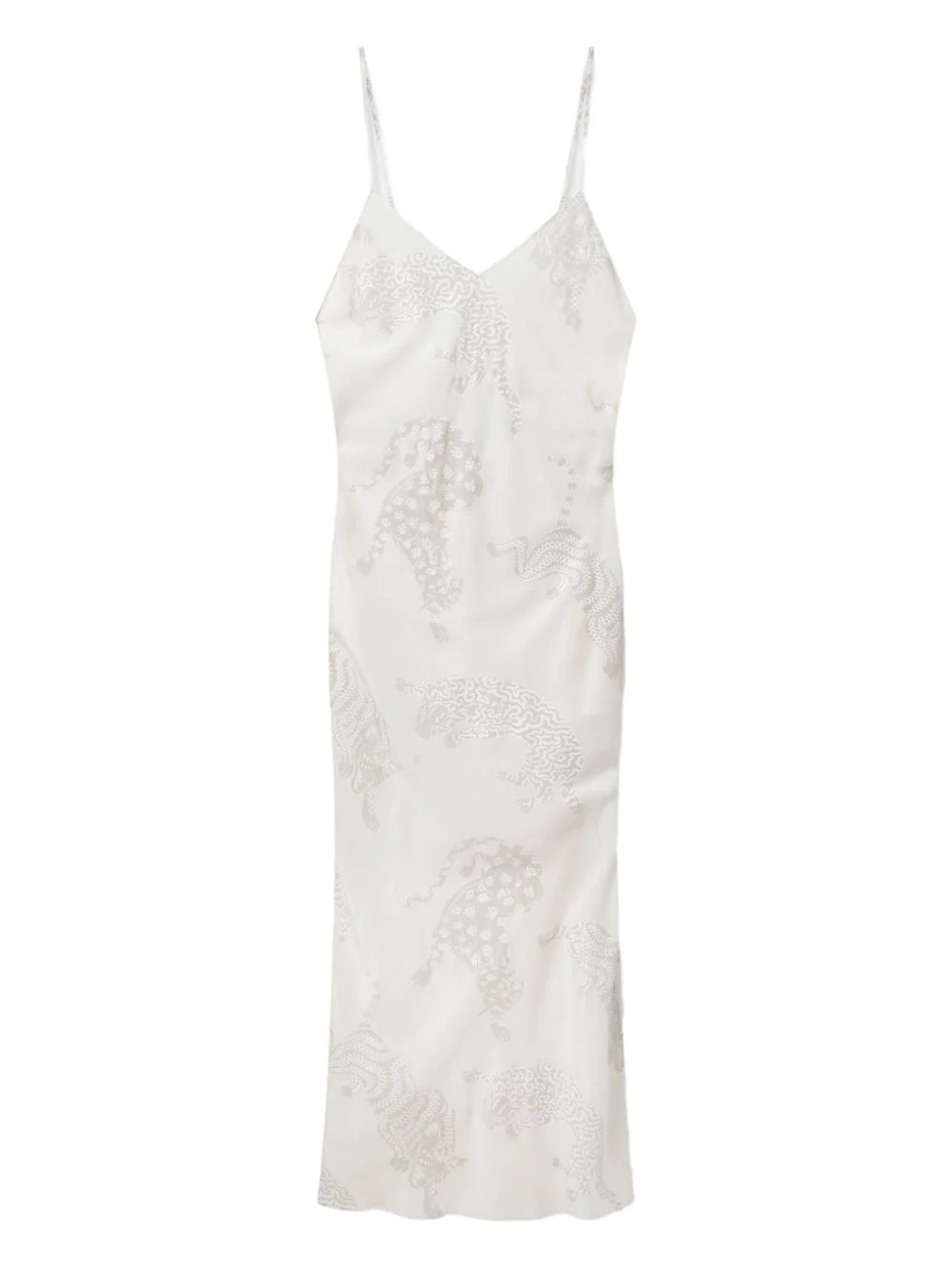 leopard-pattern sleeveless dress Highlights - White - Leopard embroidered - Sleeveless - V-neck Imported Composition Silk 100%