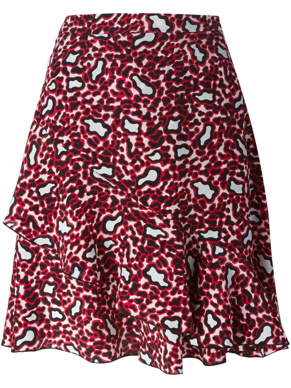 leopard-print mini skirt Highlights - Black, white and red silk leopard skirt from stella mccartney featuring a mid rise, a concealed fastening, a draped design, a short length and a leopard print. Imported Composition Silk 100% Washing instructions Dry Clean Only