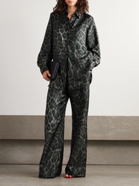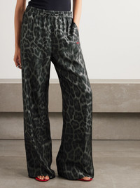 Stella McCartney's pants are as chic as they are comfortable to wear. Made from organic silk-satin patterned with leopard spots, they have wide legs and drawstring ties at the waist. Lower-Impact Materials. This product is made using at least 50% lower-impact materials or ingredients. Find out more about our NET SUSTAIN criteria here. Size & Fit - Fits true to size, take your normal size - Low-rise, intended for a wide-leg fit - Elasticated at the waist for a comfortable fit - Lightweight, non-stretchy fabric - Model is 175cm/ 5'9" and is wearing an IT 40 Model measurements: - Bust: 85cm/ 33.5” - Waist: 63cm/ 25” - Hip: 90cm/ 35.5” Details & Care - Tonal-gray organic silk-satin - Pull on - 100% organic silk - Dry clean