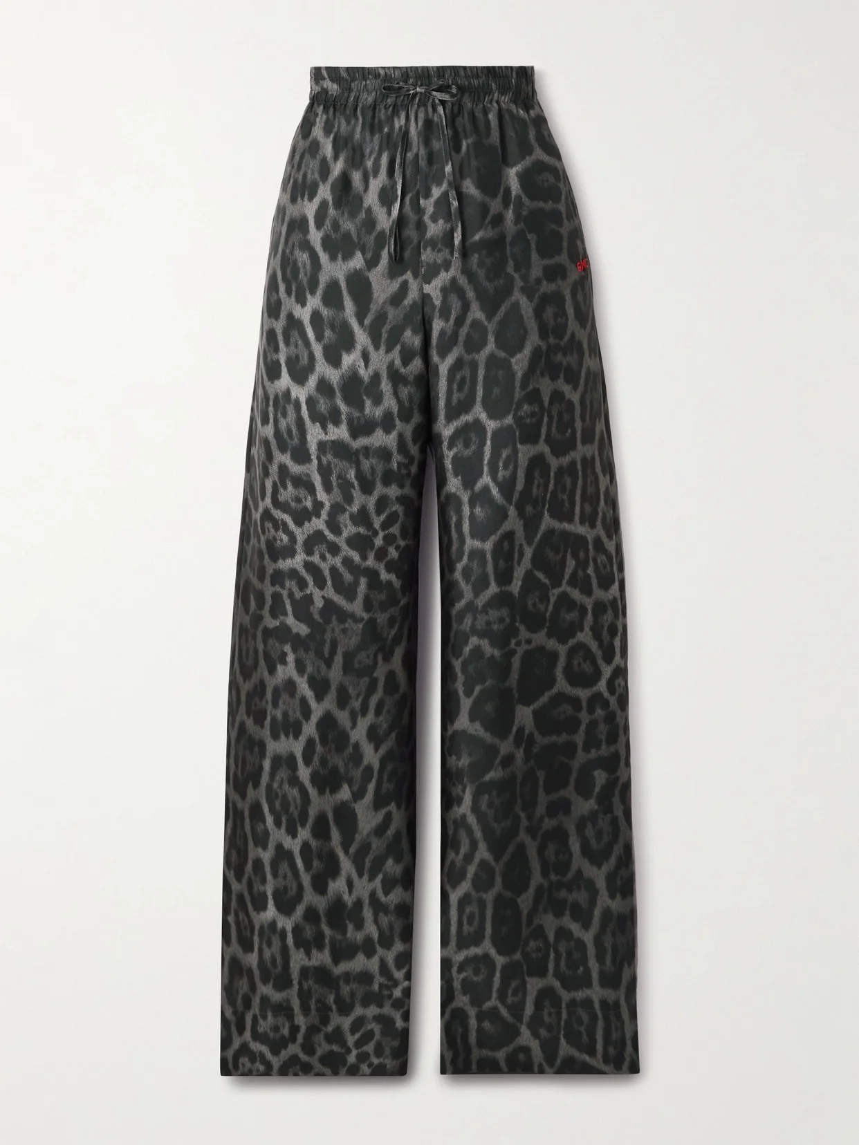 Leopard-print Organic Silk-satin Wide-leg Pants