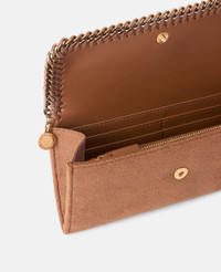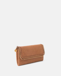 Item 430999WP04052200U This continental wallet by Stella McCartney is consciously crafted from our vegan Shaggy Deer fabric, instantly recognizable for its soft, semi-gloss grained finish. Bordered with the iconic diamond-cut Falabella chain, the long wallet features an accordion compartment divided into two parts with several card slots and a zipped pocket to keep cash and cards organized and secure. - Color: Brown - Pecan brown - Mat Shaggy Deer vegan leather alternative with semi-gloss grain - Signature recycled brass and recyclable aluminum diamond-cut chain - Waxed GOTS-certified organic cotton lacing - Zipper coin pocket - Eight card slots - Press stud fastening - Engraved Zamak logo medallion charm - Recycled polyester monogram lining - Made in Italy Product Care & Fit Advice Care: Spot clean only with soft damp cloth Composition: Main fabric: 100% polyester All Stella McCartney shoes and accessories are made from non-leather materials in keeping with our cruelty-free ethos. - Size: 7.7 x 3.9 x 1 in - Weighs approximately 7.1 oz