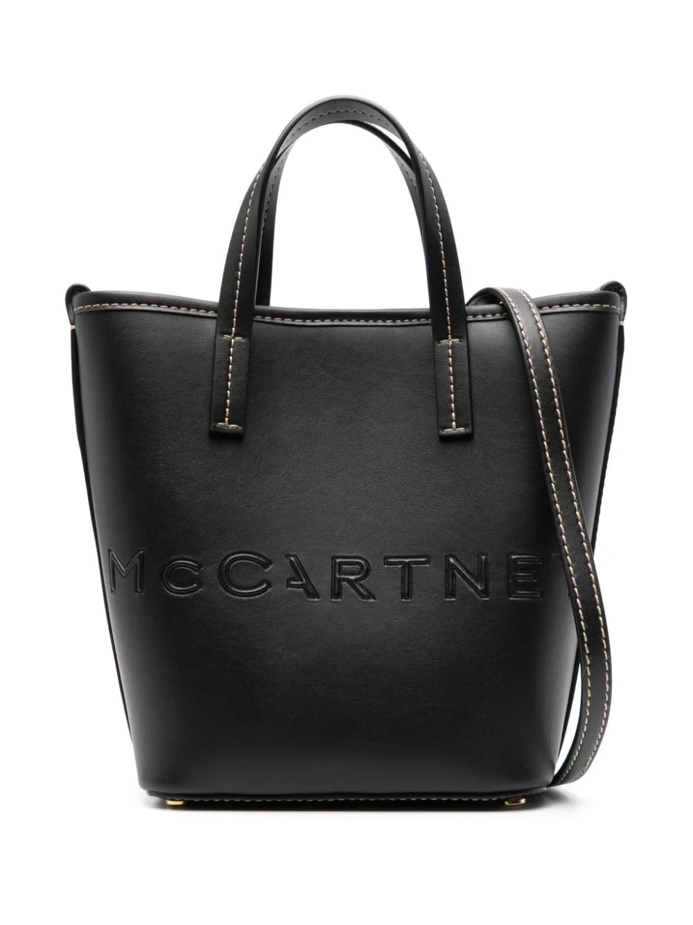 logo bucket bag Highlights - Black - Faux leather - Logo lettering - Magnetic fastening - Two flat top handles - Adjustable detachable shoulder strap - Contrast stitching - Metal feet - Main compartment - Internal patch pocket Made in Italy Composition Outer: Polyurethane 74%, Polyamide 26% Lining: Polyamide 70%, Polyurethane 30% SIZE & FIT Model measurements Height 5 ft 10 in(1.77 m) Bust/Chest 32.28 in(82 cm) Hips 35.03 in(89 cm) Waist 25.19 in(64 cm) Measurement DEPTH 3.74 in(9.5 cm) HANDLE 21.25 in(54 cm) HEIGHT 6.69 in(17 cm) STRAP 22.04 in(56 cm) WIDTH 8.26 in(21 cm)