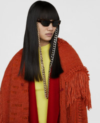 Item 910016PE00012508U Ageless wearability and circularity of style permeate Autumn 2022, reflected in these Logo Cat-Eye sunglasses. Crafted from 100% bio-acetate – a responsibly harvested wood pulp that is a biodegradable alternative to plastic – they have a bold cat-eye frame for notice-me appeal. This pair is elevated by a Stella logo at the temples, reimagined in shiny endura gold studs. - Colour: Shiny Dark Havana - Lens: Solid Blue - Style: Bold Cat-Eye - Chunky cat-eye frame - Shiny endura gold studded Stella McCartney logo on the temples - Detachable Falabella chain - All of our eyewear comes with a protective pouch Product Care & Fit Advice - Composition: 100% bio-acetate front and temples; bio-based lenses