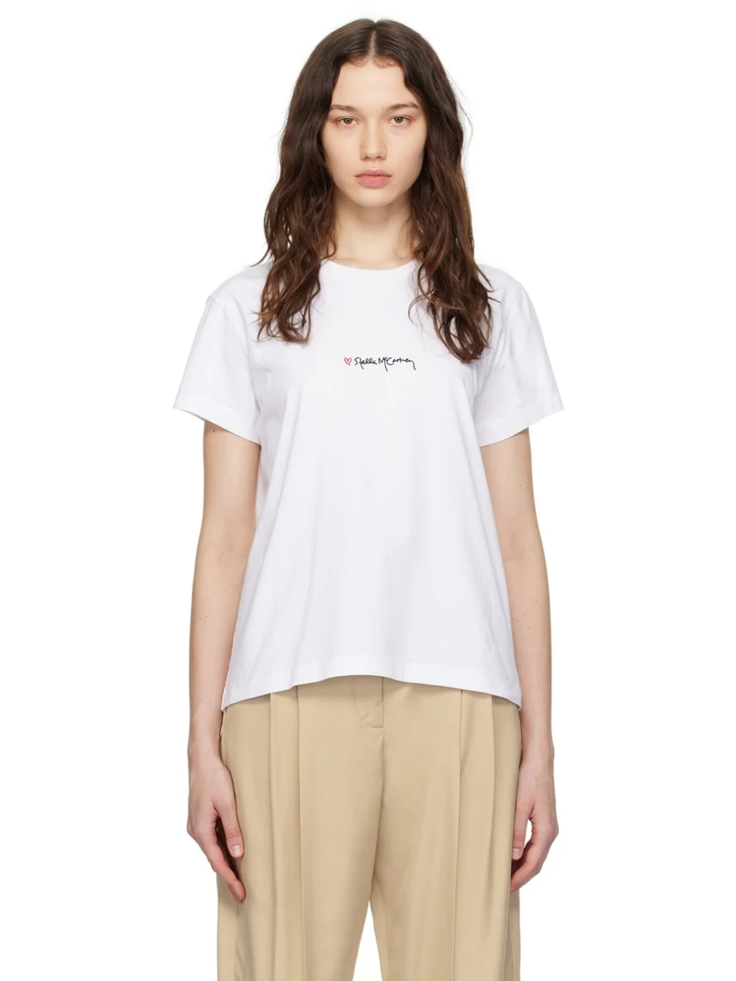 Cotton jersey T-shirt. · Rib knit crewneck · Logo embroidered at chest Made from cruelty-free, non-animal materials. Supplier color: Pure white Body: 100% cotton. Trim: 97% cotton, 3% elastane. Made in Portugal 241471F110000