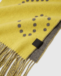 Item 6K09323S25417216U Spun from soft 100% RWS-certified wool, this scarf is shaped to a chunky silhouette stamped with the Stella McCartney logo. Pair it with the coordinating beanie. - Colour: Yellow/Grey - Chunky - Stella McCartney logo graphic - Fringed trims - Wraps on - Handcrafted in Italy Product Care & Fit Advice - Care: Dry clean only - Composition: 100% Wool One size