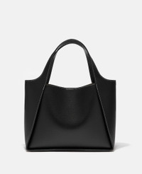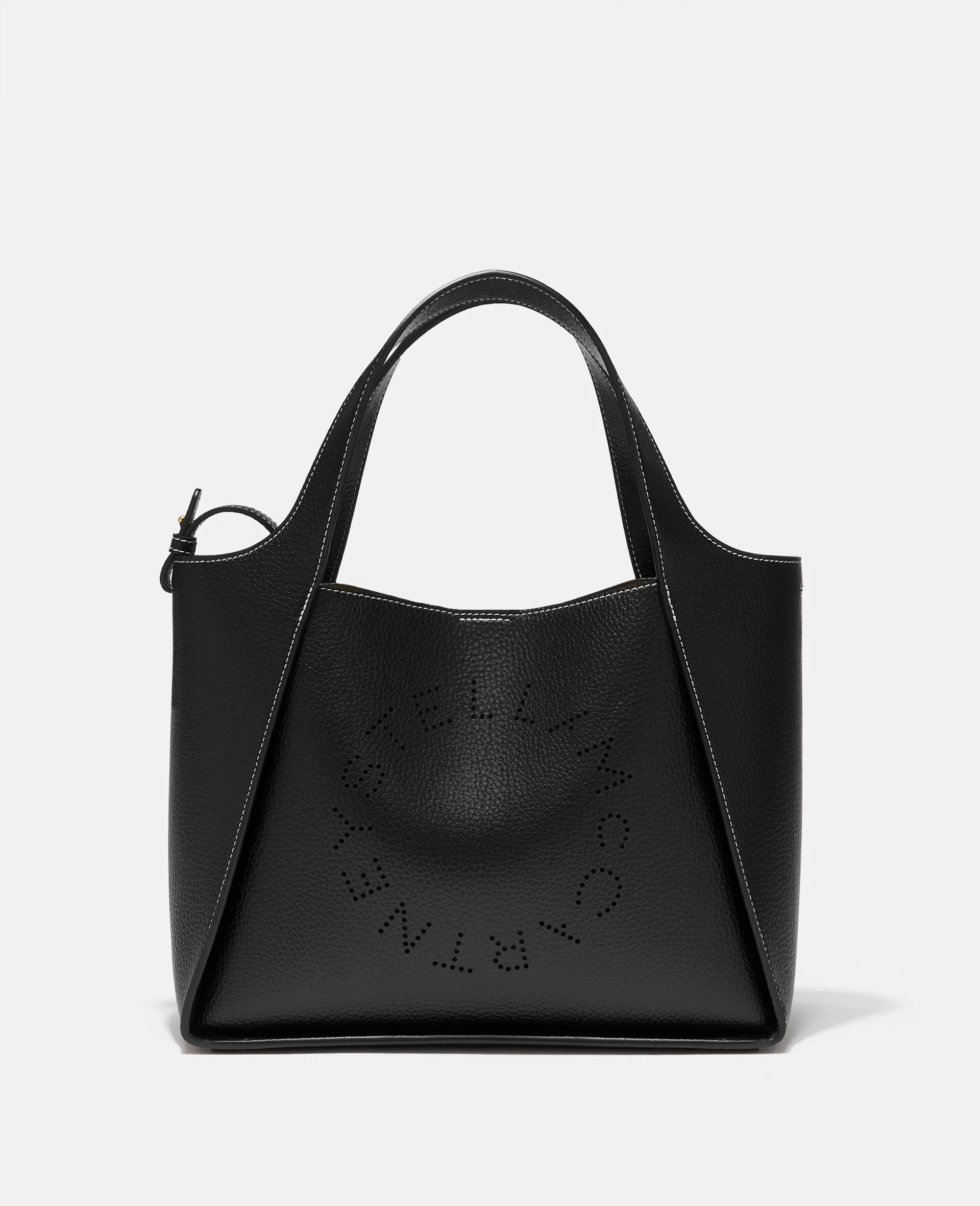 Item 513860WP00571000U This Logo crossbody bag is a practical choice for city-to-country wear, crafted from our Alter Mat vegan alternative to animal leather with an embossed grain finish. With two top handles and an adjustable crossbody strap, the bag is finished with a perforated Stella McCartney circular logo and a handy buttoned pouch inside to keep smaller belongings organised. - Colour: Black - Midnight black - Comfortably fits all phones, tablets and wallets alongside small daily essentials - Alter Mat vegan alternative to animal leather with embossed grain - Perforated Stella McCartney circular logo on front - Contrast white single topstitching - Two top handles, and adjustable crossbody strap - One main compartment - Detachable pouch included - Magnetic snap fastening - Stainless steel and recycled brass hardware - Alter Suede lining - Made in Italy Product Care & Fit Advice - Care: Use a soft damp cloth with a small amount of demineralised water (likewise for ironing) and apply to all the material. Leave the bag to dry. Avoid scrubbing to prevent damaging the surface of the bag. As this accessory is made from very delicate fabric, we recommend handling with care and avoiding contact with any sharp objects, jewellery, or rough surfaces. When not in use, always store the item in its protective bag. - Composition: Main fabric: 47% polyurethane, 20% biobased polyurethane, 20% pre-consumer recycled polyamide, 13% polyamide, Handles: Main fabric: 47% polyurethane, 20% biobased polyurethane, 20% pre-consumer recycled polyamide, 13% polyamide, Lining: 50% polyamide, 50% polyurethane - Fits all phones, tablets and wallets. - Size: 31.5 x 22 x 13cm - Handle drop: 13cm - Strap length: 50cm - Weighs approximately 0.46kg - All of our shoes and accessories are made from non-leather materials in keeping with our cruelty-free ethos.
