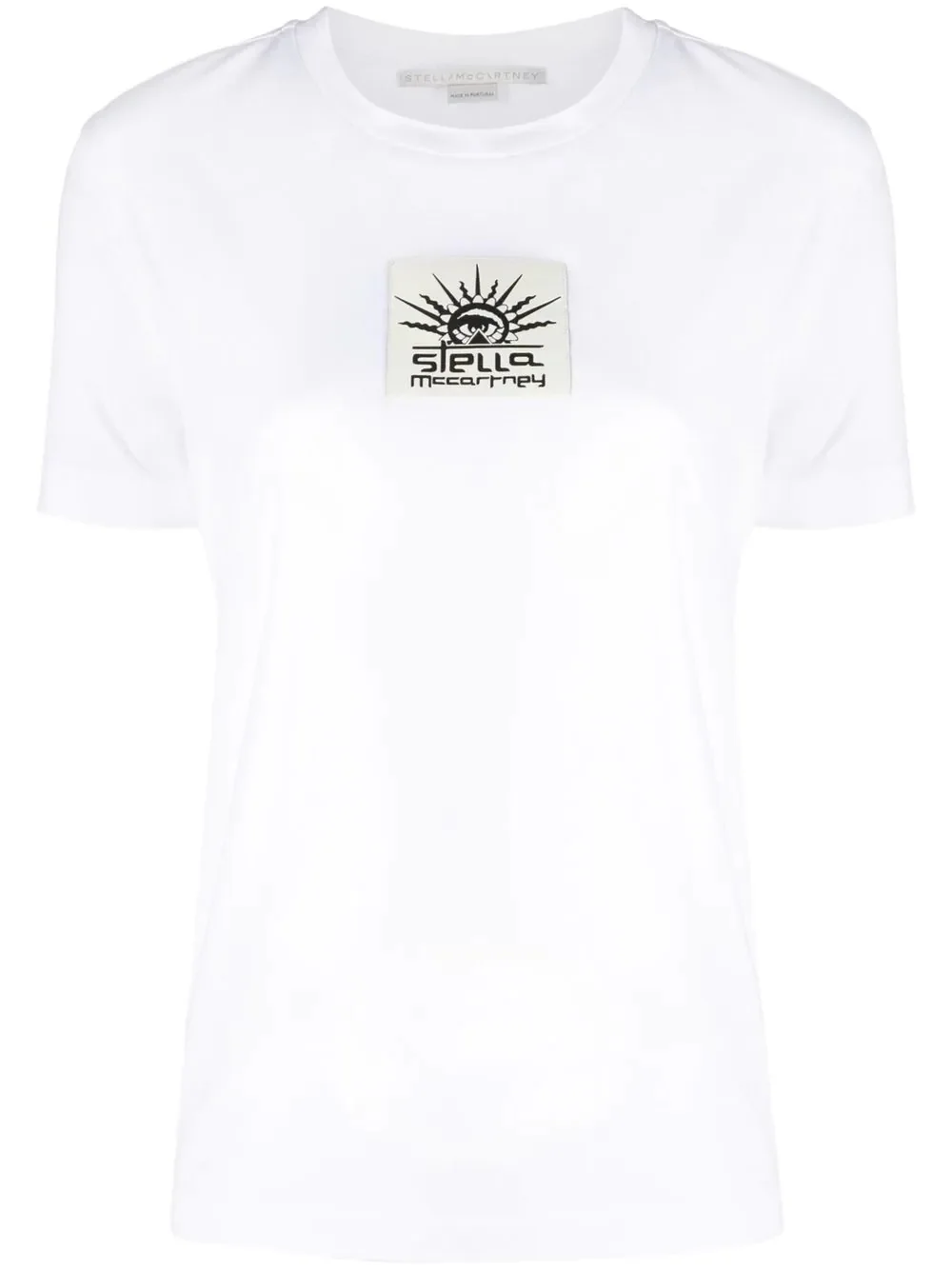 logo-patch cotton T-shirt Stella McCartney reimagines its signature for SS22. In white colourway, this organic cotton tee is detailed with a whimsical logo patch to the front. Highlights - White - Organic cotton - Crew neck - Logo patch to the front - Short sleeves - Straight hem Imported Composition Cotton 100%, Polyester 100% SIZE & FIT Model measurements Height 5 ft 10 in(1.77 m) Bust/Chest 35.03 in(89 cm) Hips 35.03 in(89 cm) Waist 23.62 in(60 cm) FittingInformation This piece fits true to size. We recommend you get your regular size Cut for a slim fit Made with a mid-weight fabric