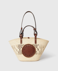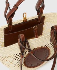 Item 7B0167WP05939370U Our timeless Logo medium tote bag is reimagined for High Summer in renewable iraca palm straw, handwoven and crocheted in a fair-trade and safe workshop by female artisans in Colombia – keeping traditional skills alive while protecting our planet for tomorrow. Iraca palm is an incredibly durable, easy-to-grow plant that supports soil health and absorbs greenhouse gasses. The luxury vegan bag is hand-finished in Italy with a Stella McCartney logo, embroidered on the front, and lined with soft organic cotton. - Color: Natural beige - Comfortably fits all phones and wallets alongside daily essentials - Iraca palm weave - Stella McCartney logo hand-embroidered vegan leather alternative logo on front - GOTS-certified organic cotton lining - Two top handles - One crossbody strap - One main compartment - Stainless steel and recycled brass hardware - Handcrafted in Italy Product Care & Fit Advice - Care: Spot clean only with soft damp cloth. - Composition: 100% Raffia - Fits all phones and wallets alongside daily essentials. - Size: 7.8 x 8.2 x 4.9 in - Handle drop: 5.7 in - Strap length: 10.2 in - All of our shoes and accessories are made from non-leather materials in keeping with our cruelty-free ethos.