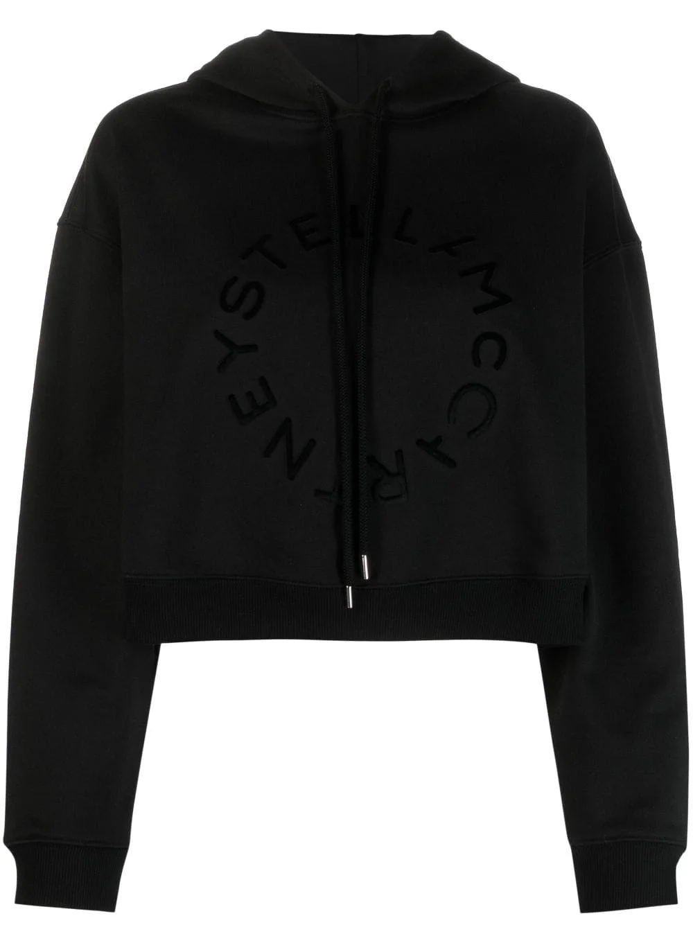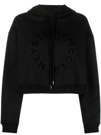 logo-print cropped cotton sweatshirt Crafted from pure cotton, this relaxed sweatshirt by Stella Mccartney is delivered in a versatile black and adorned with a tonal logo print to the front for a subtle branded touch. Highlights - Black - Cotton - Drawstring hood - Logo print to the front - Long sleeves - Straight hem - Cropped Made in Italy Composition Cotton 100% SIZE & FIT Model measurements Height 5 ft 9 in(1.75 m) Bust/Chest 31.49 in(80 cm) Hips 34.05 in(86.5 cm) Waist 24.21 in(61.5 cm) FittingInformation Designed to be unstructured, offering a loose fit throughout Made from a midweight non-stretch fabric, this piece offers minimal elasticity when worn This piece fits true to size – take your usual size Washing instructions Machine Wash