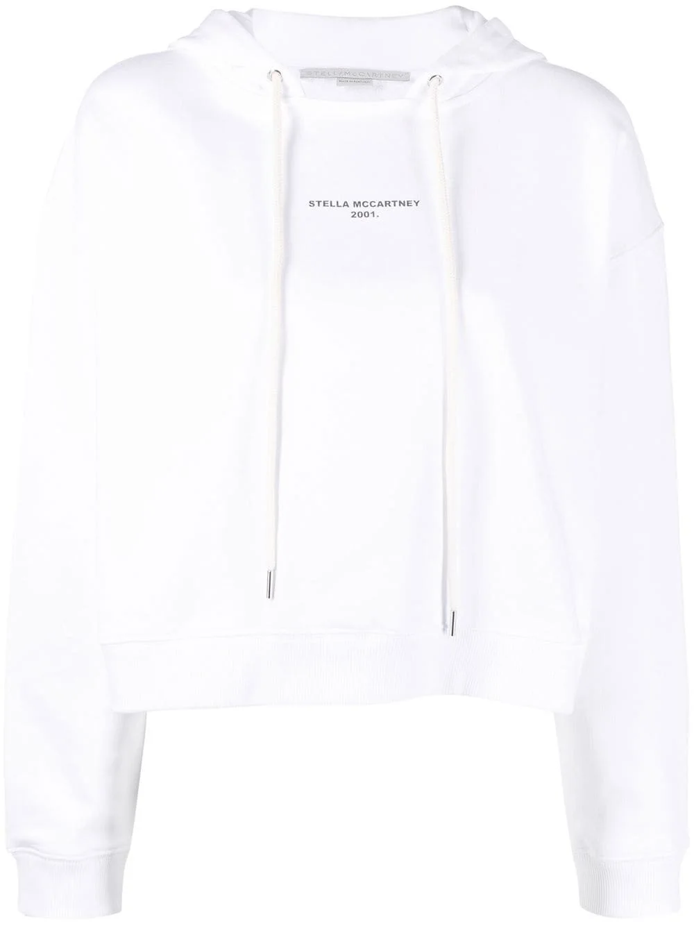 logo-print cropped hoodie Stella McCartney showcases its propensity for casualwear in the design of this hoodie. Printed with contrast logo lettering, it’s cut from cotton jersey to a cropped silhouette. Highlights - White - Cotton - Drawstring hood - Long sleeves - Ribbed cuffs - Straight hem Imported Composition Cotton 100% Washing instructions Machine Wash