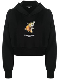 tiger-print cropped hoodie Stella McCartney introduced the Tiger motif into its collection to celebrate 2022's Lunar New Year. The sweet character appears printed on the front of this hoodie, giving the sporty piece a playful touch. Highlights - Tiger-print cropped hoodie from stella mccartney featuring black, logo print at the chest, classic hood and long sleeves. . Made in Italy Composition Cotton 100%, Viscose 90%, Polyester 10% SIZE & FIT Model measurements Height 5 ft 10 in(1.78 m) Bust/Chest 31.49 in(80 cm) Hips 35.43 in(90 cm) Waist 24.4 in(62 cm) FittingInformation This piece fits true to size. We recommend you get your regular size Cut for a loose fit Made with a mid-weight fabric