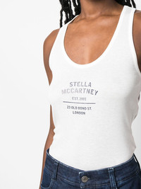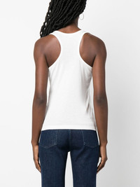 logo-print racerback top Highlights - White - Cotton-lyocell blend - Scoop neck - Racerback - Logo print to the front Imported Composition Lyocell 67%, Cotton 33% SIZE & FIT Model measurements Height 5 ft 10 in(1.77 m) Bust/Chest 29.92 in(76 cm) Hips 34.25 in(87 cm) Waist 23.62 in(60 cm) FittingInformation This piece fits true to size. We recommend you get your regular size Cut for a slim fit Made with a mid-weight fabric