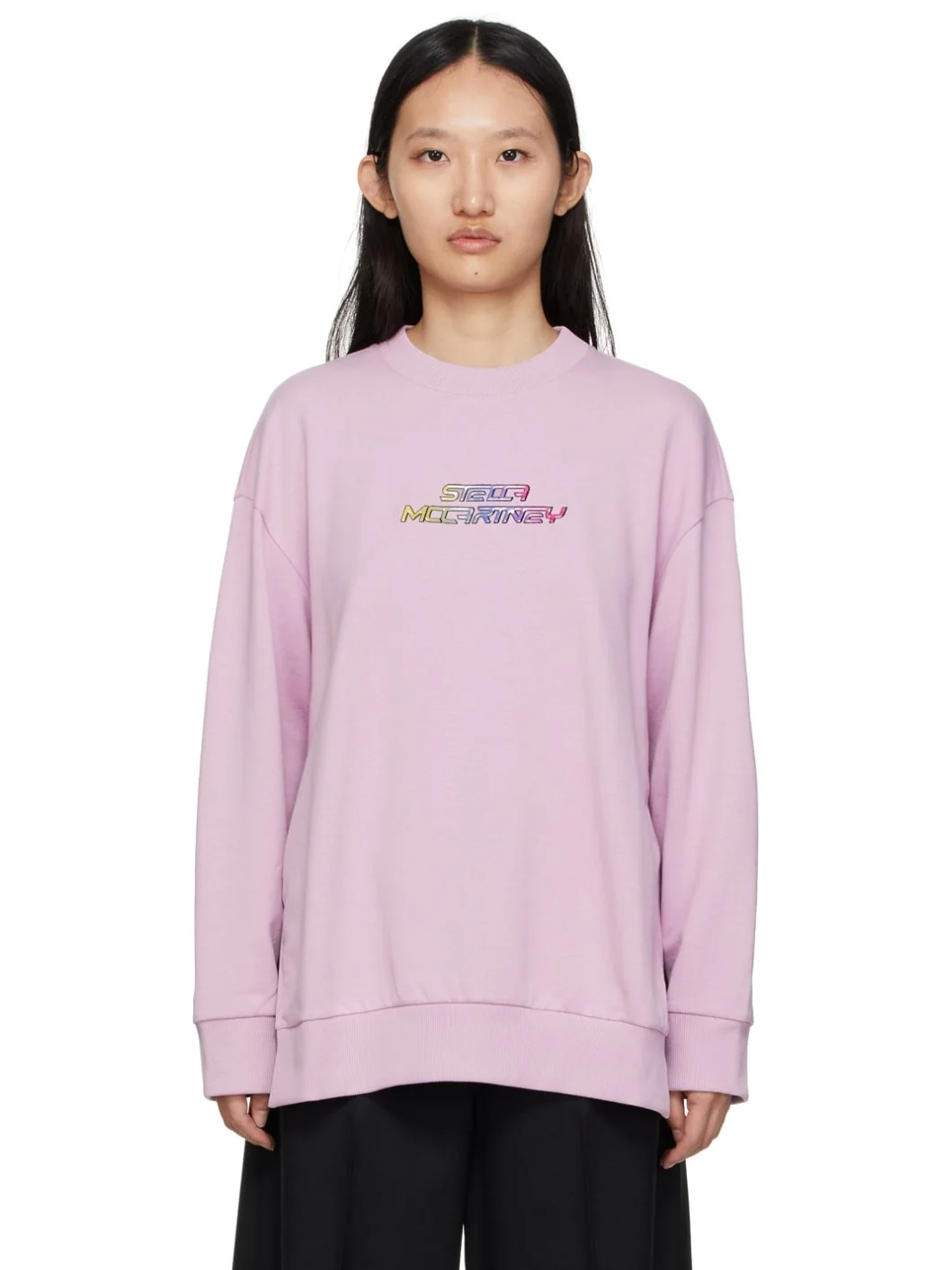 Long sleeve cotton-blend French terry sweatshirt in purple. Logo bonded at chest in multicolor. · Rib knit at crewneck collar, cuffs, and hem · Vents at seams Made from cruelty-free, non-animal materials. Supplier color: Orchid Body: 70% cotton, 30% lyocell. Trim: 69% cotton, 30% lyocell, 1% elastane.