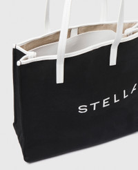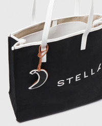 Item 7B0133WP05151000U Crafted from Bananatex®, the world’s first durable, technical fabric made purely from the naturally grown Abaca plants, this generously sized tote has one main compartment and an internal slip pocket – primed for keeping your laptop, phone and essentials secure. - Color: Black and white - Comfortably fits all tablets and 15” laptops alongside daily essentials - Crafted from Bananatex® - Recycled brass hardware - Stella McCartney logo on front - Two top handles - One main compartment - Internal slip pocket - Fully lined with organic cotton - Handcrafted in Italy Product Care & Fit Advice Care: Spot clean only with soft damp cloth. Composition: 100% Abaca - Fit: Fits all tablets and laptops alongside daily essentials - Size: 13 x 14.1 x 5.1 in - Handle drop: 9 in - Weighs approximately 25.5 oz