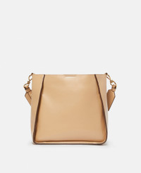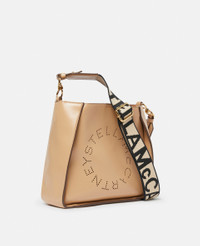 Item 700073W85422600U - Colour: Natural - Medium earthy natural beige - Smooth Alter Mat vegan alternative to animal leather - Perforated Stella McCartney medallion logo on front - Single topstitching - Stella McCartney logo canvas crossbody strap made from post-consumer GRS-certified recycled polyester - One main compartment - One internal slip pocket - Magnetic snap fastening - Alter Suede lining - Made in Italy Product Care & Fit Advice - Care: Use a soft damp cloth with a small amount of demineralised water (likewise for ironing) and apply to all the material. Leave the bag to dry. Avoid scrubbing to prevent damaging the surface of the bag. As this accessory is made from very delicate fabric, we recommend handling with care and avoiding contact with any sharp objects, jewellery, or rough surfaces. When not in use, always store the item in its protective bag. - Composition: Main fabric: 56% solventless polyurethane, 44% polyester, Trims: 70% solventless polyurethane, 30% post-consumer recycled polyester, Strap: 100% post-consumer recycled polyester, Lining: 50% nylon, 50% polyurethane - Size: 23 x 23 x 8cm - Strap length: Min. 42cm/Max. 67cm - Weighs approximately 0.425kg - All of our shoes and accessories are made from non-leather materials as part of our cruelty-free ethos.