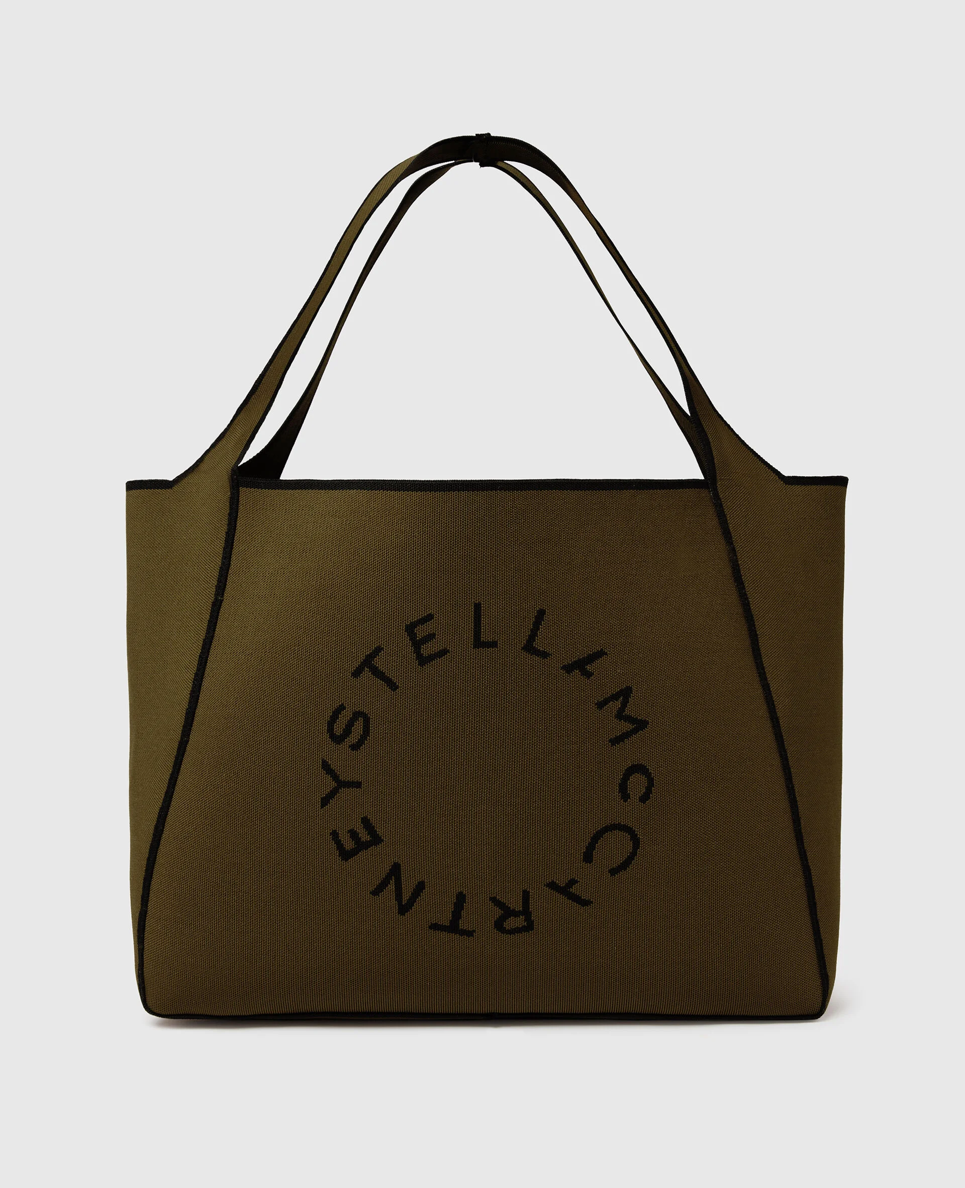 Item 502793WP05922942U A timeless example of the Stella Logo’s minimal design, this square tote bag from Stella McCartney has wear-anytime appeal. This black tote bag is made from a supple vegan alternative to animal leather, with a perforated circle logo at the front and a detachable inner pouch to effortlessly store essentials. - Color: Khaki - Comfortably fits all laptops and tablets alongside daily essentials. - Vegan alternative to animal leather sourced from recycled materials - Studded Stella McCartney logo on front - Contrast single topstitching - Two top handles - One main compartment - Detachable pouch inside - Recycled nylon lining - Engraved ruthenium logo medallion charm - Handcrafted in Italy Product Care & Fit Advice - Care: Spot clean only with soft damp cloth. - Composition: 56% Polyester, 38% polyamide, 4% elastane 8.7 (L) x 1.2 (W) x 4.7 (H) x 20.9 (STRAP LIGHT) in
