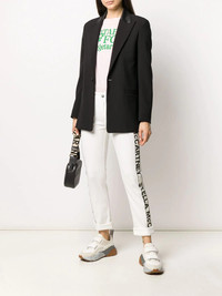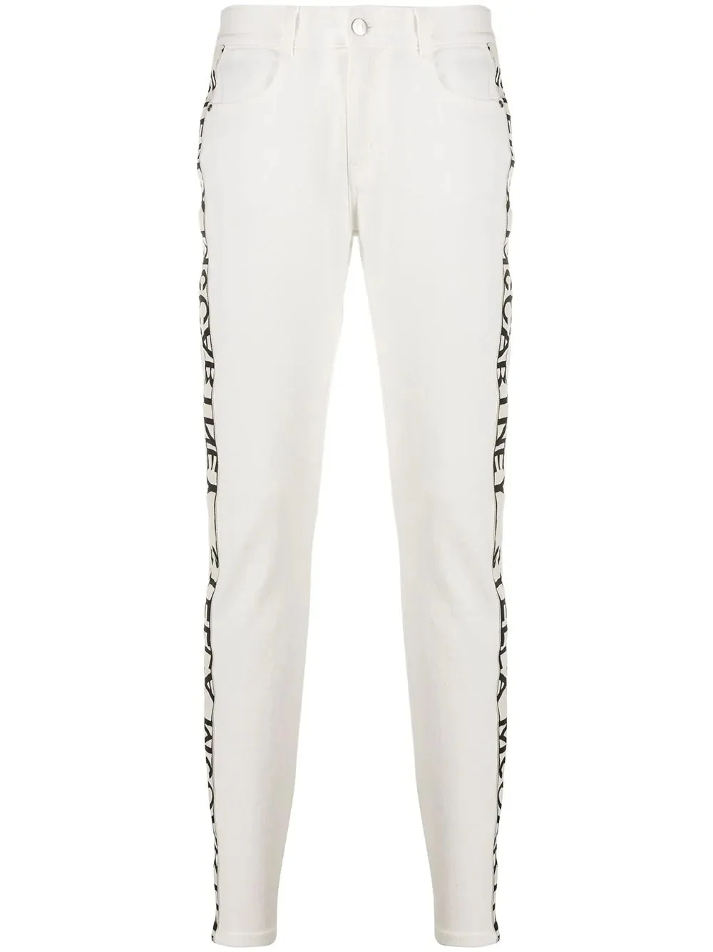 logo tape skinny jeans Highlights - Skinny jeans get an update here. logo tape details to each side add an unexpected twist. make them your new favourite pair. featuring belt loops, a front button fastening, side slit pockets, two back patch pockets, a skinny fit, a cropped length and logo tape details. Made in Italy Composition Outer: Cotton 98%, Polyester 90%, Polyamide 10%, Elastane 2% Lining: Polyester 55%, Cotton 45% SIZE & FIT Model measurements Height 5 ft 11 in(1.8 m) Bust/Chest 33.07 in(84 cm) Hips 37.4 in(95 cm) Waist 25.19 in(64 cm) Washing instructions Machine Wash
