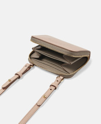 Item 7P0006W88566802U Elevate your accessories with the Logo zip wallet, complete with an adjustable crossbody strap for easy accessibility. The zip wallet includes room for notes and up to 10 credit cards. It is crafted from partially biobased smooth Alter Mat – our luxury vegan alternative to animal leather – and finished with an engraved logo medallion zip pull. - Colour: Powder - Blush pink - Smooth Alter Mat vegan alternative to animal leather - Hand-painted Stella McCartney dotted circular logo on front - Embossed Stella McCartney logo on interior - Contrast oat cream zip edge and interior - One main compartment divided into two - Four card slots, and one central card slot - One exterior card slot - Zip-around fastening - Detachable buckle strap - Engraved gold zamac logo medallion zip pull - Made in Italy Product Care & Fit Advice - Care: Use a soft damp cloth with a small amount of demineralised water (likewise for ironing) and apply to all the material. Leave the bag to dry. Avoid scrubbing to prevent damaging the surface of the bag. As this accessory is made from very delicate fabric, we recommend handling with care and avoiding contact with any sharp objects, jewellery, or rough surfaces. When not in use, always store the item in its protective bag. - Composition: Main fabric: 41% polyurethane, 33% biobased polyurethane, 26% post-consumer recycled polyester, Lining 100% polyamide - Size: 10.2 x 8 x 2cm - Strap length: Min. 52.5cm/Max. 55.5cm - Weighs approximately 90g - All of our shoes and accessories are made from non-leather materials in keeping with our cruelty-free ethos.