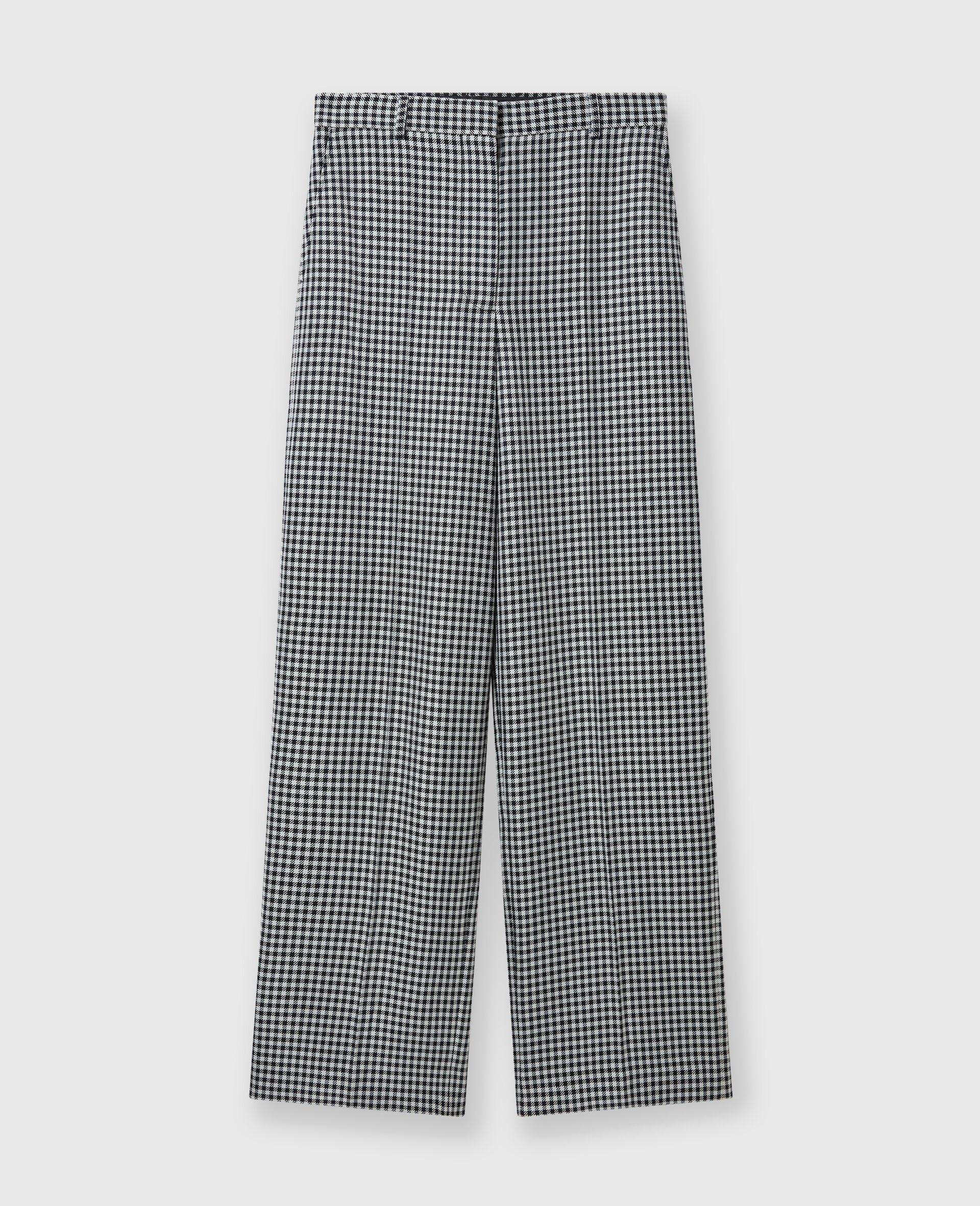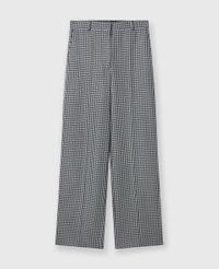 Item 6402243FJ7009221 Savile Row tailoring is foundational to every Stella McCartney collection. For Spring 2025, these pants are immaculately constructed from a blend of organic cotton and fully traceable RWS-certified wool, tailored to a low-rise, straight-leg silhouette and swathed in a check pattern. Pair them with the coordinating trench coat. - Color: Cream and black - Low-rise - All-over check pattern - Belt loops - Two pockets - Pleats running down the center of each leg - Low crotch - Button and zipper-fly fastening - Made in Romania Product Care & Fit Advice Care: Dry clean only Composition: 51% cotton, 49% wool Fit: Loose fit Sizing: Take your usual size Midweight, non-stretch fabric