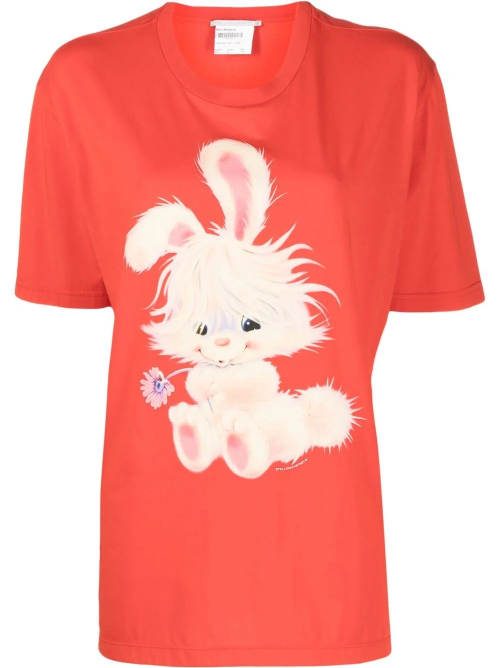 Lunar New Year short-sleeved T-shirt Stella McCartney's Lunar New Year T-shirt is crafted from cotton and boasts a playful graphic print to the front, complemented by a slogan print to the rear. Highlights - Coral red - Cotton - Graphic print to the front - Slogan print to the rear - Crew neck - Short sleeves - Straight hem Imported Composition Body: Cotton 90% Cotton 10% SIZE & FIT Model measurements Height 5 ft 11 in(1.8 m) Bust/Chest 33.07 in(84 cm) Hips 37.4 in(95 cm) Waist 25.19 in(64 cm) Washing instructions Dry Clean Only