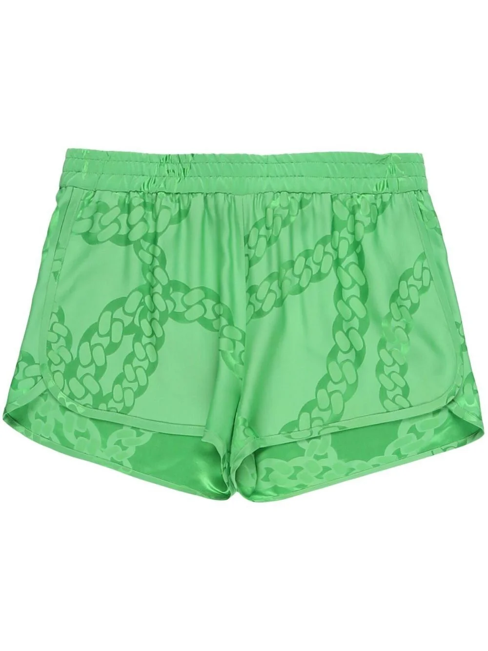 mid-rise satin finish shorts Highlights - Green - Satin finish - Elasticated waistband - Mid-rise - All-over chain pattern print Made in Italy Composition Viscose 53%, Silk 47%