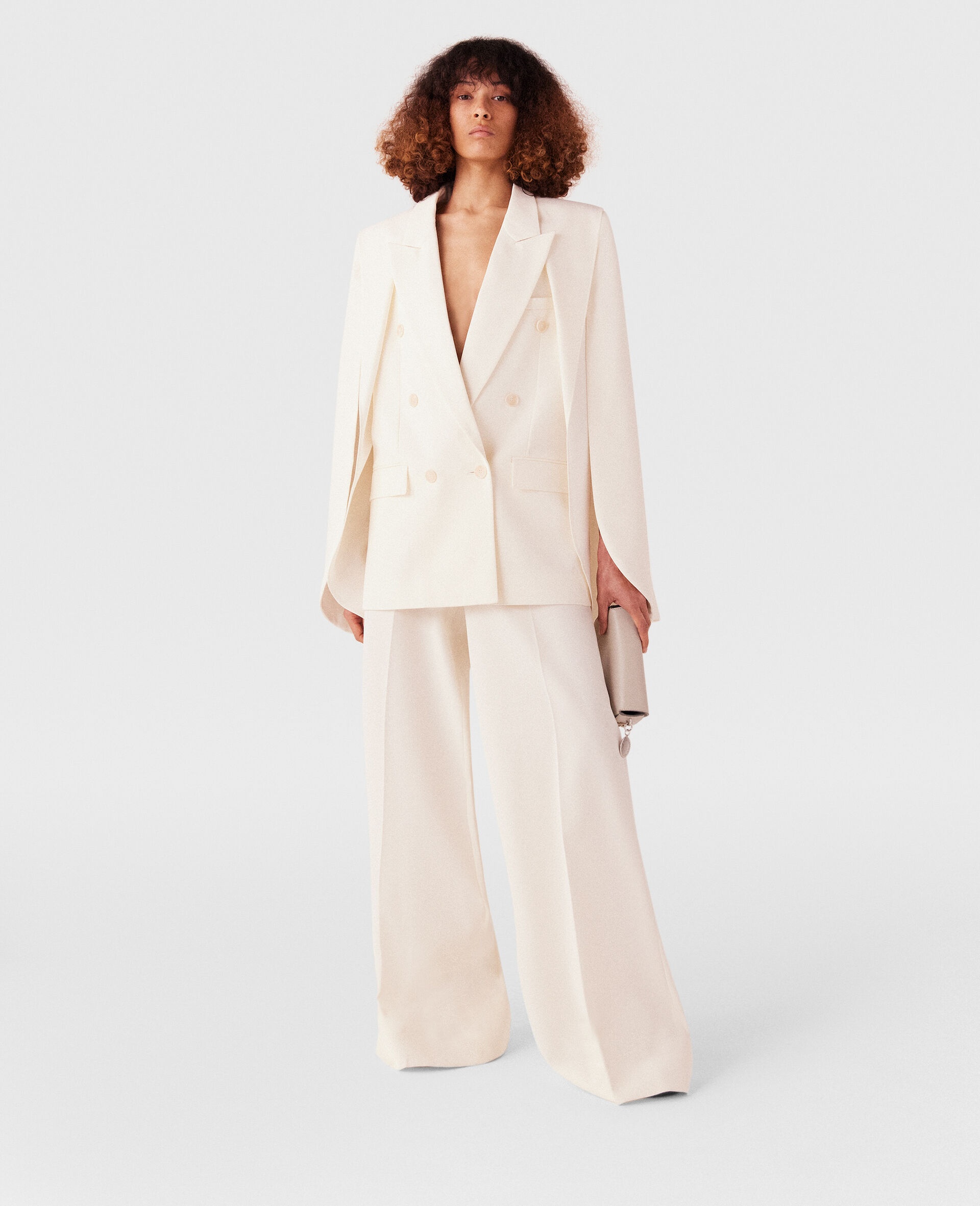 Item 6402063CU7049200 Stella McCartney studied on Savile Row, tutored by the legendary Edward Sexton – evidenced by these expertly tailored pants. Cut from RWS-certified wool, these pants are cut to a high-rise waist that skims the hips before panning out into wide, pleated legs. Pair them with the coordinating blazer. - Color: White - Cream white - High-rise - Wide leg - Flat waistband - Belt loops - Pleated legs - Two side pockets - Concealed zipper closure - Made in Hungary Product Care & Fit Advice Care: Dry clean only Composition: Main fabric: 97% wool 3% elastane - Size: Fits true to size - Designed for a regular fit - Midweight, non-stretch fabric