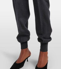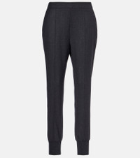 Crafted from wool, these Stella McCartney sweatpants offer a blend of casual ease and refined edge. This pair features a mid-rise waist, tapered legs with center pleats, and an elasticated waistband for added comfort. Product Details - Material: 100% wool - Care instructions: dry clean - Made in Romania - Designer color name: Ash Grey - Item color: gray - Details: 98% cotton, 1% elastane, 1% polyamide - Elasticated waistband - Pockets: slant pockets - Elasticated ankle cuffs - Single pleat - Item number: P01052068 Size & Fit - True to size - Elasticated waist - Non-stretchy fabric - Tapered leg - The model seen in the picture is 178cm-5'10" and wearing a size IT 40