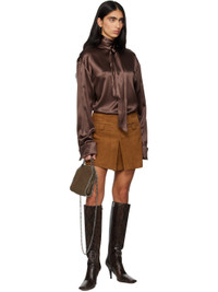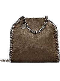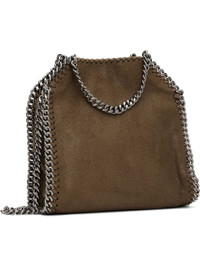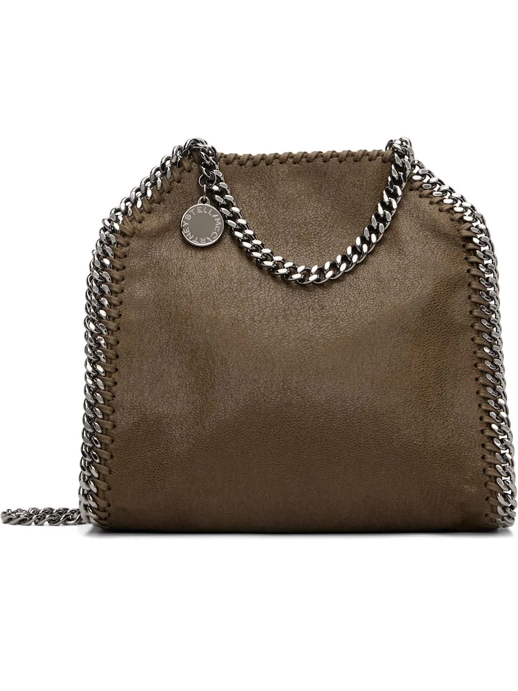 Handcrafted grained faux-leather shoulder bag. GOTS-certified organic cotton whipstitching throughout. · Curb chain trim throughout · Fixed carry handles · Logo charm at handle · Fixed crossbody strap · Magnetic press-stud closure · Patch pocket at interior · H7" x W6.75" x D2.25" Made from cruelty-free, non-animal materials. Supplier color: Olive Synthetic. Made in Italy 252471F048033