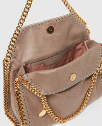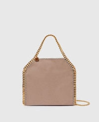 Item 371223W93552800U A more compact version of our iconic vegan luxury bag, the Falabella mini tote bag is small but mighty. Consciously crafted from our grained vegan Shaggy Deer fabric and finished with a diamond-cut chain made from recycled brass and aluminum, this black tote has a handy inside slip pocket and a monogrammed lining made from post-consumer recycled polyester. - Color: Moss - Comfortably fits all phones and wallets alongside small daily essentials - Matte vegan Shaggy Deer fabric with semi-gloss grain - Signature ruthenium recycled brass and aluminum diamond-cut chain - Waxed GOTS-certified organic cotton lacing - Two top handles, and one shoulder strap - One main compartment - One internal slip pocket - Magnetic snap fastening - Engraved ruthenium logo medallion charm - Recycled polyester monogram lining - Handcrafted in Italy Product Care & Fit Advice - Care: Spot clean only with soft damp cloth. - Composition: 100% Polyester - Fits all phones and wallets. - Size: 10.4 x 9.3 x 3.9 in - Handle drop: 4.3 in - Strap length: 18.5 in - Weighs approximately 26.1 oz