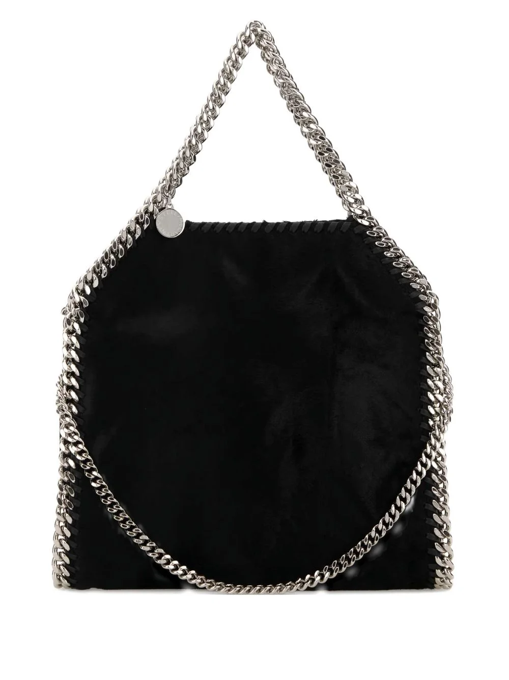 mini Falabella tote bag Highlights - Black - Velvet texture - Chain top handle - Silver-tone metal finish Made in Italy Composition glitter 100%, silver 100%, Fabric 100%