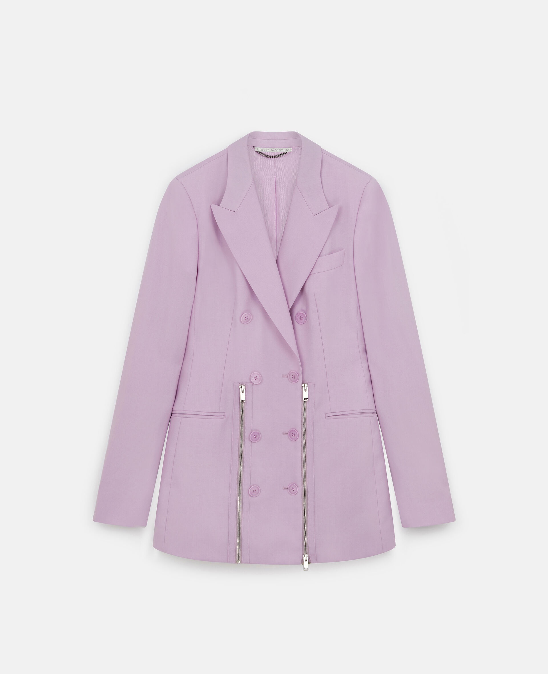 Spring 2022 is a time for renewal and a return to (night)life, made for Stella women who live in the moment and are conscious of tomorrow. The collection blends the nostalgic with the futuristic, connecting the experimental aesthetics of Y2K music subcultures and club kids to the digital youth of today. - Color: Orchid - Jacket dress - Double-breasted design - Button fastening, long sleeves - Symmetrical zip detailing on the front - Welt pockets - Made in: Bulgaria Product Care & Fit Advice - Care: Dry clean - Composition: 100% Wool, Lining 52% Sustainable Viscose, 48% Organic Cotton - Fits true to size - Designed for a tight fit - Mid-weight, non-stretchy fabric - Model is 5 ft 10 in/1.78 m, is a size US 4 and wears a size IT 40 (UK 8/FR 36)