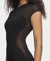 Item 6K09623S25571000 The Stella McCartney Miracle Dress is an instantly recognizable, illusory icon from our archive. We bring this timeless outline into the now as a sculpting, forest-friendly viscose knit dress sensually accentuating the silhouette with revealing mesh panels. A fresh take on a forever icon. - Color: Black - Crewneck - Short sleeve - Stretch-knit - Sheer mesh paneling - Calf-length hem - Zipper fastening - Made in Italy Product Care & Fit Advice Care: Dry clean only Composition: 83% viscose, 17% polyester Fit: Sculpting, body-hugging fit Sizing: Take your usual size Midweight, stretchy fabric