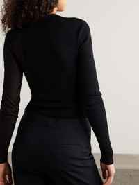 EDITORS'NOTES If you’re searching for ‘Miracle’ contouring, consider Stella McCartney’s bodysuit. Made from stretch-knit, it has a contrasting sheer cotton-blend panel, which creates an asymmetric, shoulder-baring sleeve. Team it with the brand’s skirts or tailoring. Lower-Impact Materials. This product is made using at least 50% lower-impact materials or ingredients. Find out more about our NET SUSTAIN criteria here. SIZE & FIT - Fits true to size, take your normal size - Designed for a close fit - Mid-weight knit with semi-sheer knit panels - Model is wearing a size Small - S/M/L sizing DETAILS & CARE - Black stretch-knit and cotton-blend - Snap fastening at base - 83% viscose, 17% polyester; trim: 80% cotton, 20% polyamide - Dry clean