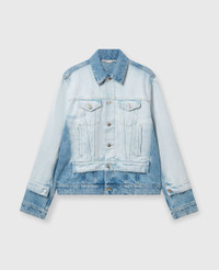 Item 6D03443SQH104545 Crafted from organic cotton, this jacket is cut to a classic long-sleeve, pointed-collar silhouette accented with panels of contrasting denim and distressed details. It is best paired with the coordinating jeans for an off-duty look. - Color: Tonal denim - Contrasting denim panels - Pointed collar - Long sleeves - Distressed finish - Two flap pockets - Button fastening - Made in Italy Product Care & Fit Advice Care: Dry clean only Composition: 100% Cotton Fit: Regular fit Sizing: Take your usual size