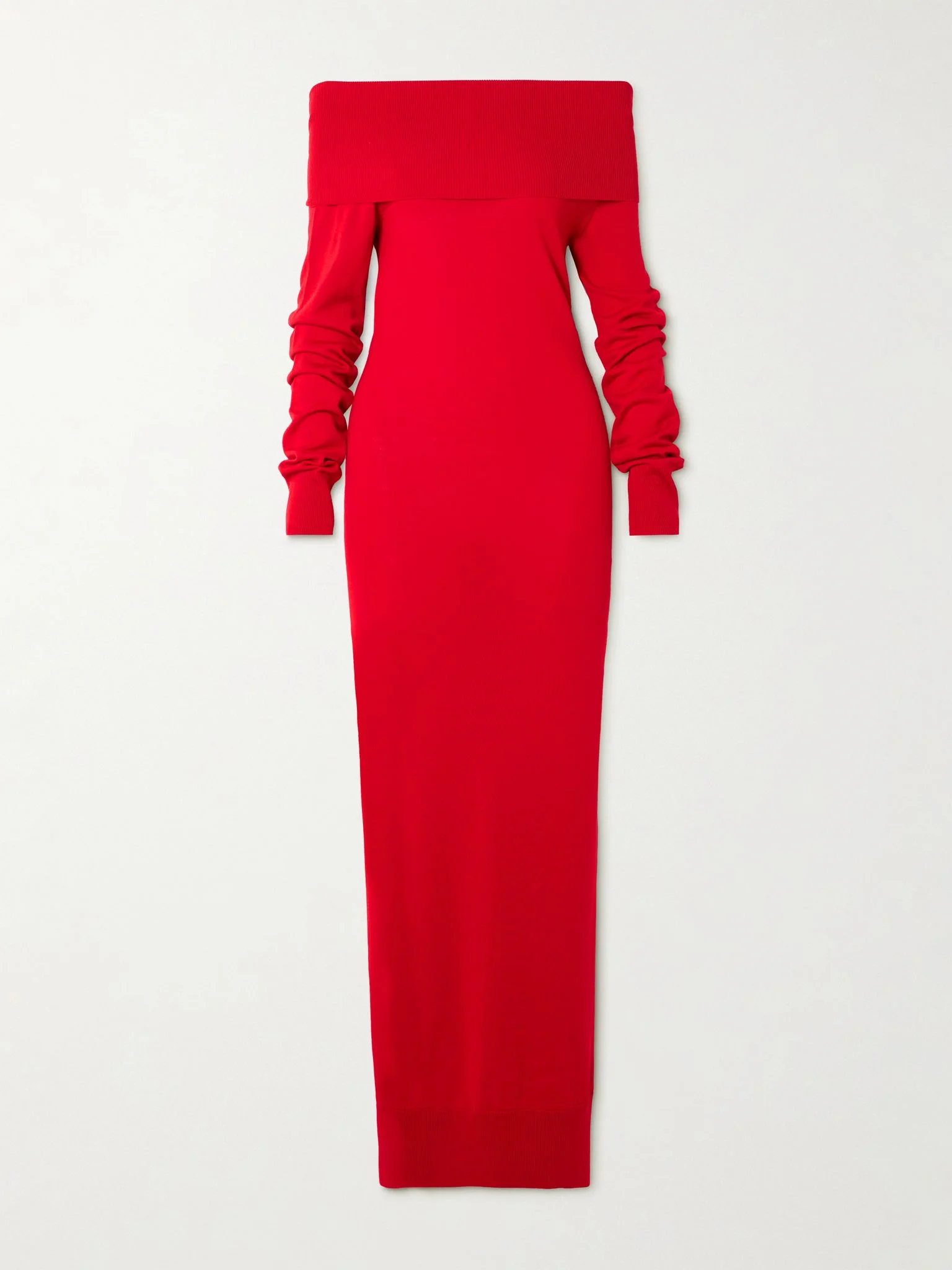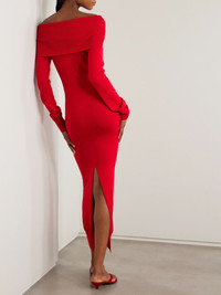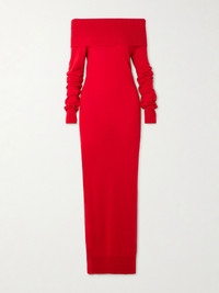 Stella McCartney's dress is knitted from wool that naturally skims and drapes over your figure. Designed in a vibrant shade of 'Lipstick Red', it's framed by a ribbed, off-the-shoulder neckline and has gathered sleeves. Lift the maxi hem with heels. Lower-Impact Materials. This product is made using at least 50% lower-impact materials or ingredients. Find out more about our NET SUSTAIN criteria here. Size & Fit - Fits true to size, take your normal size - Designed for a close fit - Mid-weight, stretchy fabric - Model is 180cm/ 5'11" and is wearing a size XSmall Model measurements: - Bust: 80cm/ 31.5" - Waist: 65cm/ 25.5" - Hip: 89cm/ 35" Details & Care - Red wool - Slips on - 100% wool - Dry clean - Designer color: Lipstick Red - This product has been made with responsibly sourced wool, originating from farms protecting animal welfare and implementing progressive land management practices