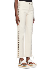 Non-stretch denim jeans. · Belt loops · Five-pocket styling · Zip-fly · Lace-up detailing at outseams · Logo patch at back waistband Made from cruelty-free, non-animal materials. Supplier color: Ecru