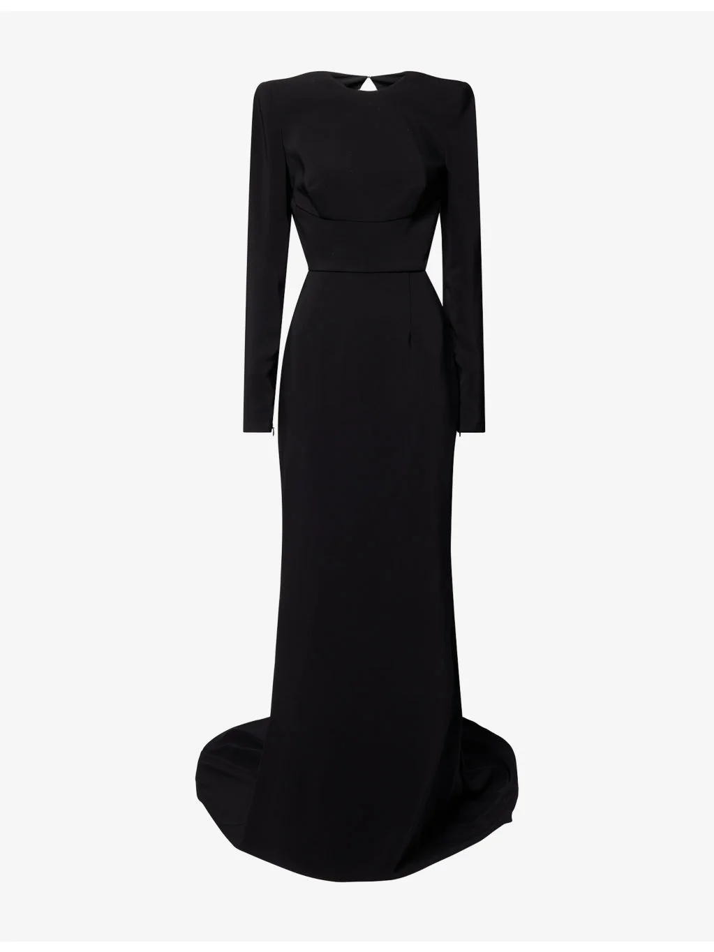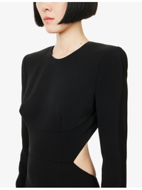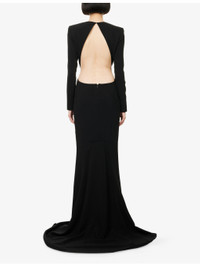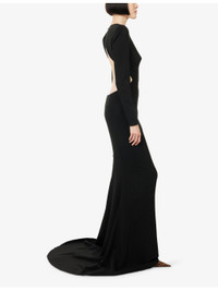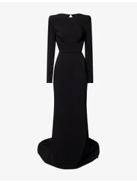 PRODUCT DETAILS - Stella McCartney stretch-woven maxi dress - 96% viscose, 4% elastane; lining 73% acetate, 23% silk, 4% elastane - Concealed zip and hook-and-eye fastening at back - Regular fit, round-neck, padded shoulders, long sleeves, zipped cuffs, darts at front, open at back, cut-out at side, fully lined, fishtail hem - Dry clean - Made in Romania - True to size - Size UK 8: length 71in / 180cm - Model is 5ft 10in/1.78m and wears a size UK 8 - Lightweight, stretchy Ref: R04496842