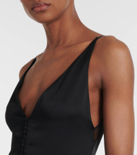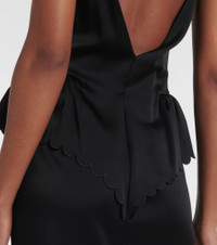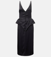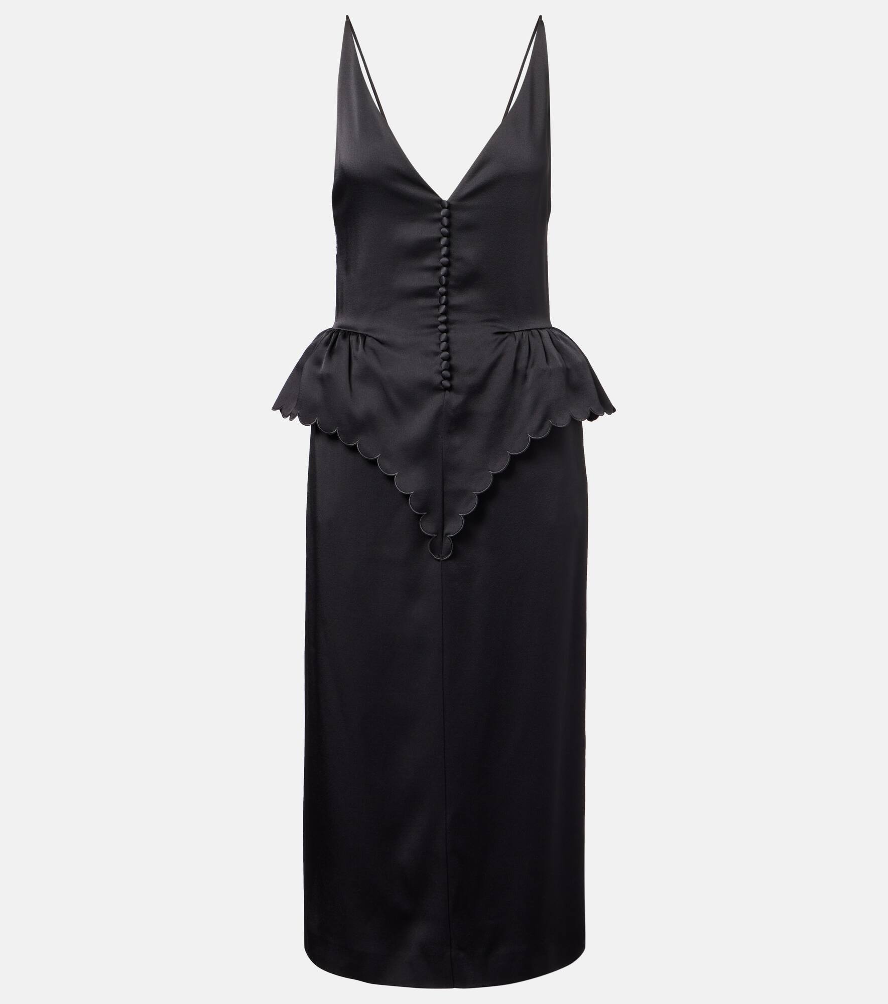 Stella McCartney specializes in sophistication with a chic twist. This midi dress is a classic peplum style with an open back and low-cut V-neckline. Product Details - Material: 73% acetate, 27% viscose - Care instructions: dry clean - Made in Italy - Designer color name: Black - Item color: black - Material II: 70% polyamide, 30% viscose - Item number: P01039297 Size & Fit - True to size - Low back - Straight fit - Non-stretchy fabric - slit length 33cm-13" - The model seen in the picture is 178cm-5'10" and wearing a size IT 40
