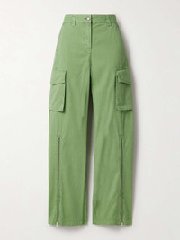 EDITORS'NOTES Stella McCartney's pants have zippers from the knee to the hem, allowing you to take the legs from wide to flared. Made from organic cotton-twill, they're trimmed with corduroy and finished with cargo pockets on either thigh. <br><br>This product was created using Considered Materials. Find out more about NET SUSTAIN <a href="https://www.net-a-porter.com/en-gb/campaigns/net-sustain">here.</a> SIZE & FIT - Fits true to size, take your normal size - High-rise, designed for a wide-leg fit - Intended to be worn multiple ways - Mid-weight, non-stretchy fabric - Model is 180cm/ 5’11” and is wearing an IT 40 DETAILS & CARE - Leaf-green organic cotton-twill and corduroy - Button and concealed zip fastening at front - 100% organic cotton - Dry clean - Designer color: Pistachio