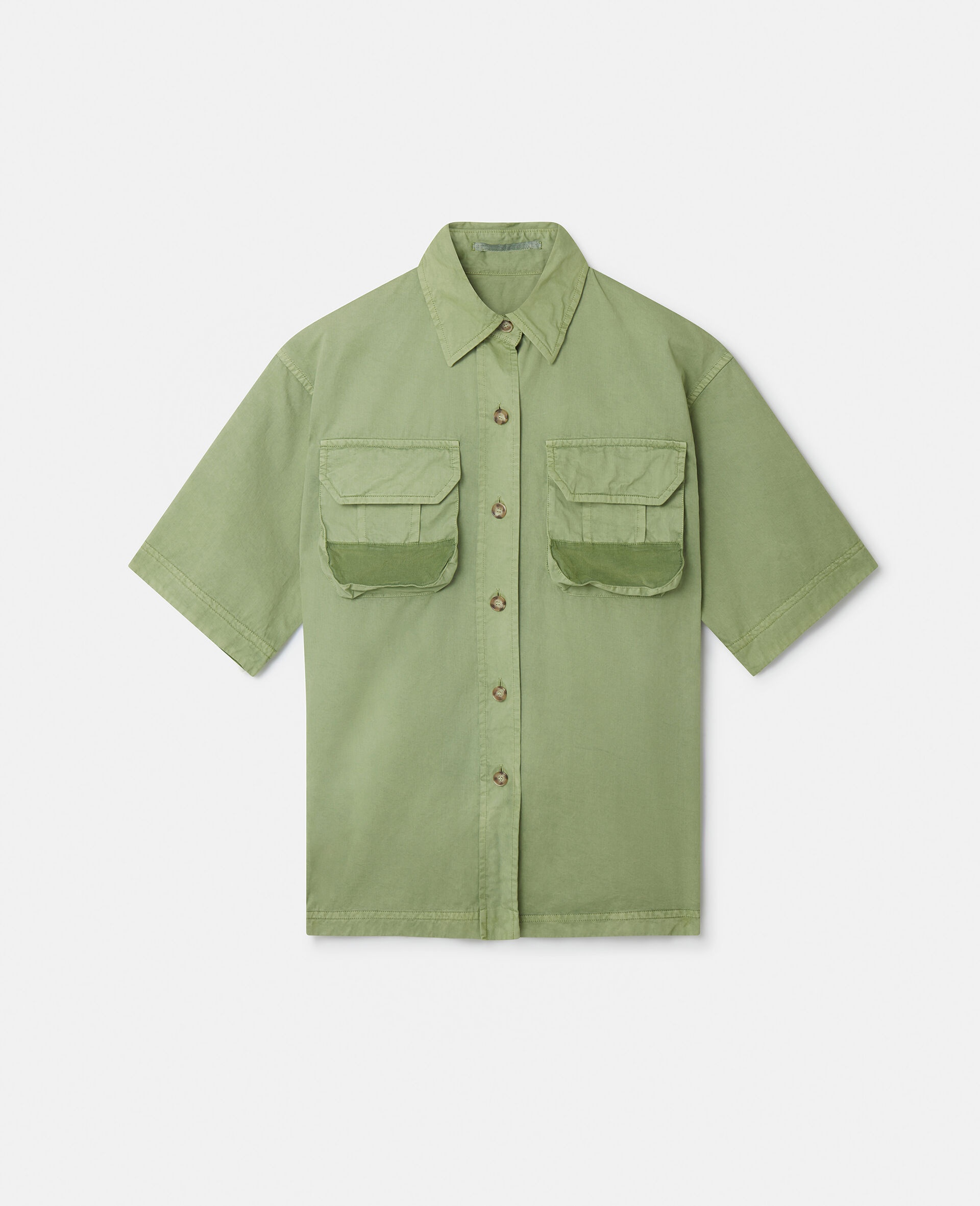- Colour: Pistachio - Muted pistachio green - Garment-dyed GOTS-certified organic cotton - Point collar - Short sleeves - Two chest cargo pockets - Button-through fastening - Made in Italy Product Care & Fit Advice - Care: Dry clean only - Composition: Main fabric: 100% organic cotton, Lining: 100% organic cotton - Fits true to size - Designed for an oversized fit - Midweight, non-stretch fabric