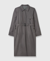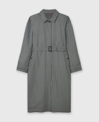 Item 6700433FJ7009221 This reversible trench coat from Spring 2025 is topped with a pointed collar and a waist-cinching belt, swathed in a check pattern. It is crafted from a blend of organic cotton and RWS wool, meaning it is fully traceable and has been produced to the highest ethical, environmental and social standards. - Color: Black and cream - Flat collar - Reversible - All-over check pattern - Shoulder pads - Peak lapels - Gun flap - Buckle cuffs - Adjustable belt at waist - Made in Poland Product Care & Fit Advice Care: Dry clean only Composition: 51% cotton, 49% wool Fit: Oversized fit Sizing: Take your usual size Midweight, non-stretch fabric Model is 5'11" / 180CM and wearing a size 42
