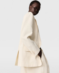 Item 650149STA499210 Expertly tailored from a lightweight a forest-friendly viscose and linen blend, this blazer is shaped to a single-breasted silhouette with structured shoulder pads and two flap pockets for a masculine-yet-feminine attitude reflecting Stella’s Savile Row training. Pair it with the coordinating pants. - Color: Buttercream - Boxy - Peak lapels - Padded shoulders - Single-breasted - Two flap pockets at front - Button fastening Product Care & Fit Advice - Care: Dry clean only - Composition: 72% Viscose, 28% flax - Fit: Regular fit - Sizing: Take your usual size - Model is 180cm or 5' 11" and wears a size 40 IT or 8 UK