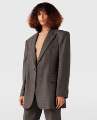 Item 6501233EJ7902425 Expertly tailored from fully traceable, RWS-certified wool, this blazer is shaped to a single-breasted silhouette with structured shoulder pads and two flap pockets. Pair it with the coordinating pants. - Color: Charcoal gray - Oversized - Single-breasted - Shoulder pads - Long sleeves - Peak lapels - Two flap pockets - Button fastening - Made in Poland Product Care & Fit Advice Care: Dry clean only Composition: 100% Wool Fit: Oversized fit Sizing: Take your usual size