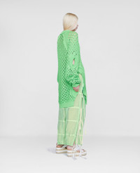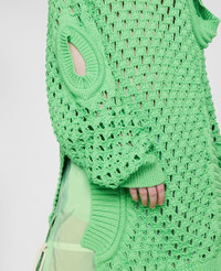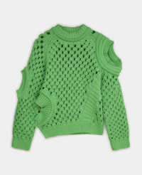 Summer 2022 evokes a sensual femininity, encouraging Stella women to redefine sexiness with an effortless and vibrant wardrobe. It harmonizes billowing shapes with bodycon silhouettes, near-transparent airiness with rich textures, and biophilic cut-outs on psychedelic prints. - Color: Fluo Green - Sweater - Ribbed trims and hem - Exaggerated stitches - Split side hems - Adjustable tie at the neckline - Graphic cut-outs on the elbow - Dropped shoulders - All-over textured mesh knit - Made in: Italy Product Care & Fit Advice - Care: Dry Clean - Composition: 87% Cotton, 13% Polyamid - Fits true to size - Designed for a slightly oversized fit - Mid-weight, non-stretchy fabric - Model is 5 ft 11 in/1.80 m, is a size UK 8 and wears a size IT 38 (US 2-4/FR 34)
