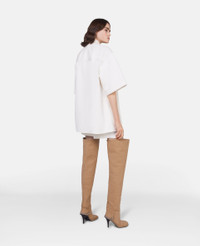 Item 6D02513SPH579067 - Colour: Ecru - Ecru - Organic cotton denim - Gold S-Wave medallion at chest - Point collar - Pure white short sleeves - Button-through fastening - Two chest buttoned flap pockets - Made in Italy Product Care & Fit Advice - Care: Dry clean only - Composition: Main fabric: 100% organic cotton, Secondary fabric: 100% organic cotton - Fits true to size - Designed for an oversized fit - Midweight, non-stretch fabric
